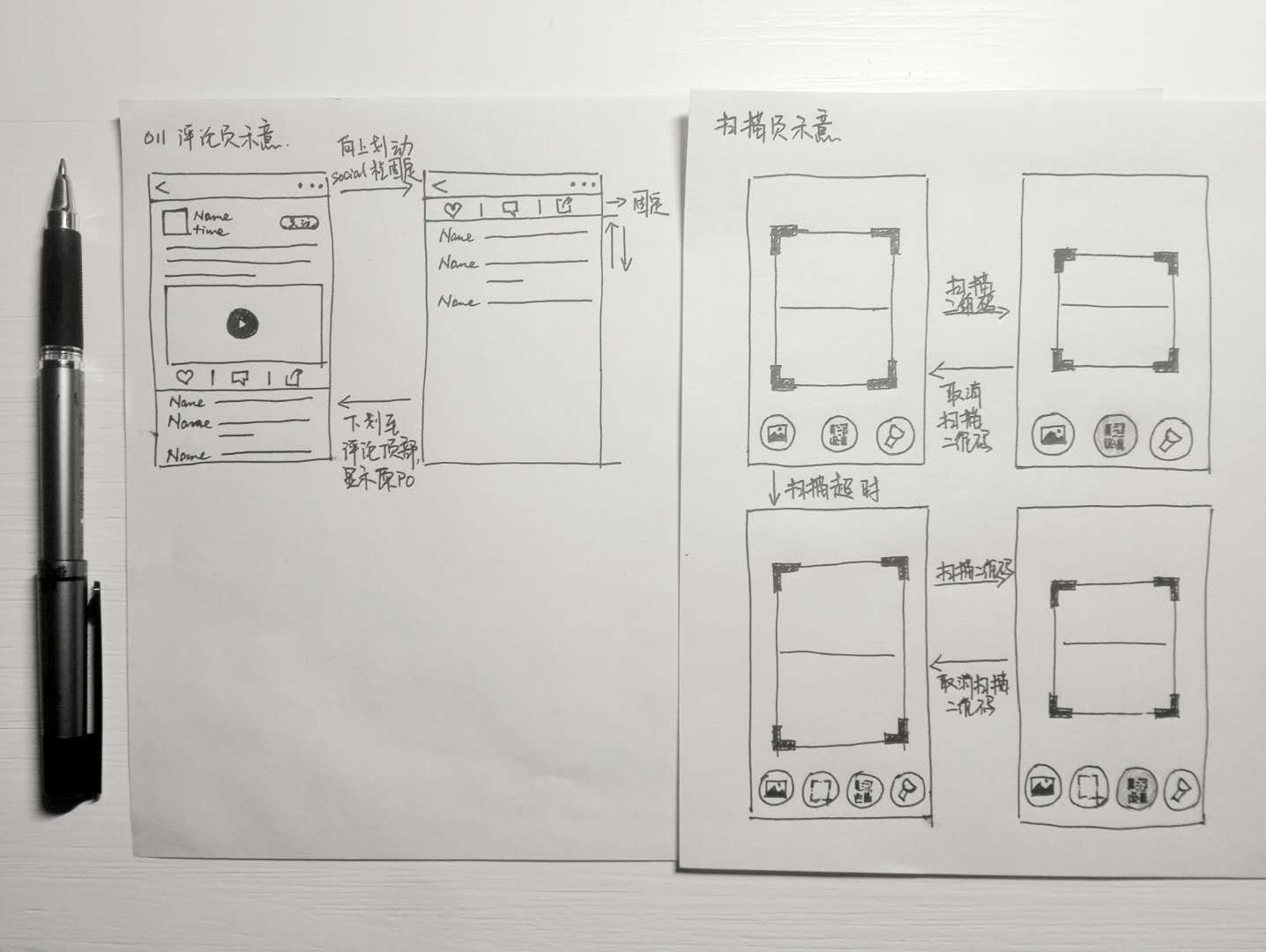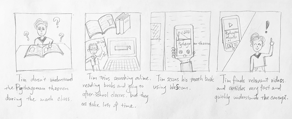 WeScan was a remote project. The development team was based in Beijing while I worked from my home in Inner Mongolia. The lack of in-person communication caused some problems at first. We both thought that our communications were being interpreted by the other party as intended when they were not. I soon found sketching to be a much faster and more powerful tool for communicating ideas, especially when working remotely.